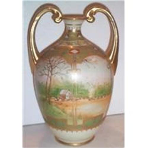 <tr><td>Title:Hand Painted Nippon Scenic Handled Vase</td></tr>