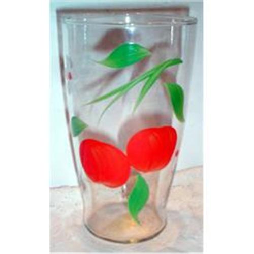 This fantastic Hand Painted Depression Glass Beaker is decorated with lovely Oranges and their leaves and is in SUPERIOR conditiion with no chips, cracks, or dings and it measures 4" in diameter and stands 6.75" tall. Sorry to say I don't know the manufacturer.