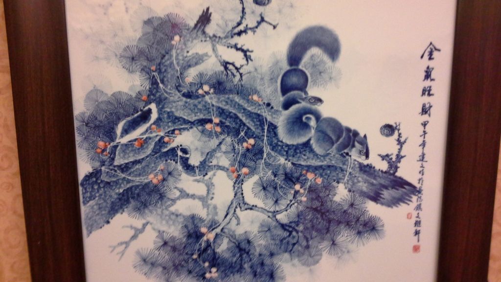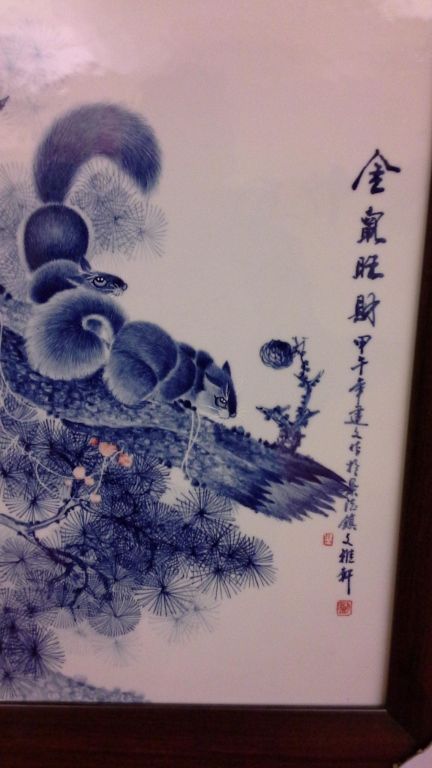 Hand Painted Original Framed Porcelain Artwork (28" X 28" including frame)