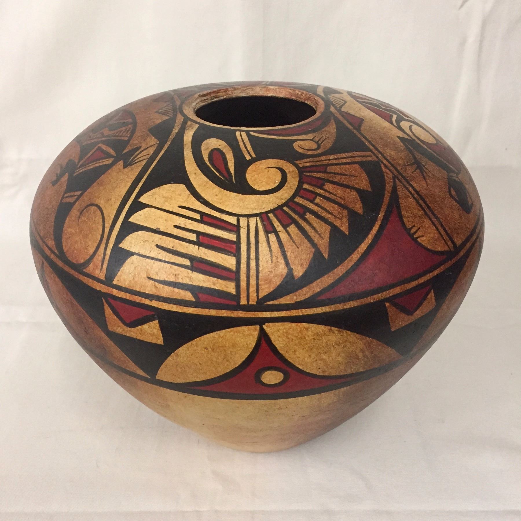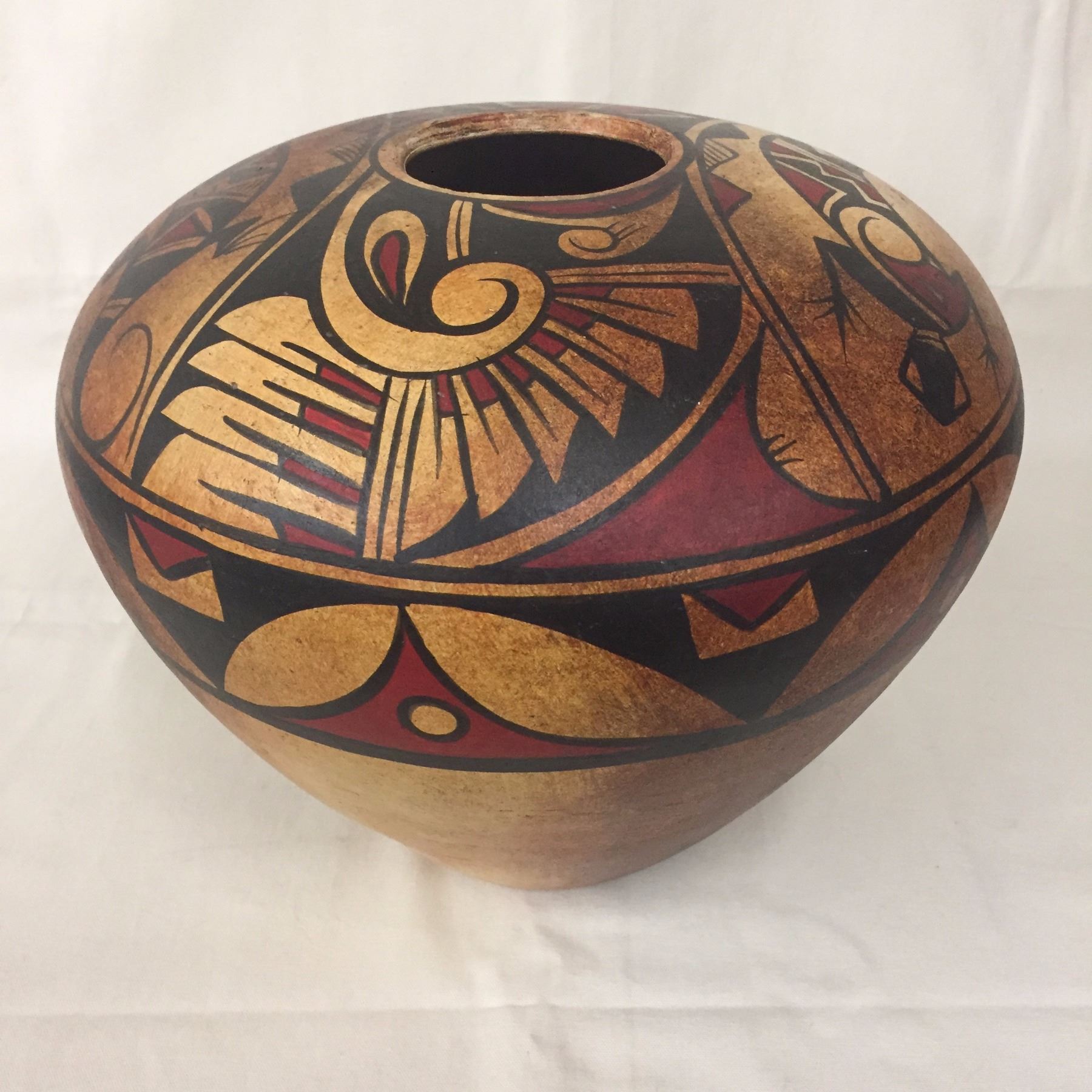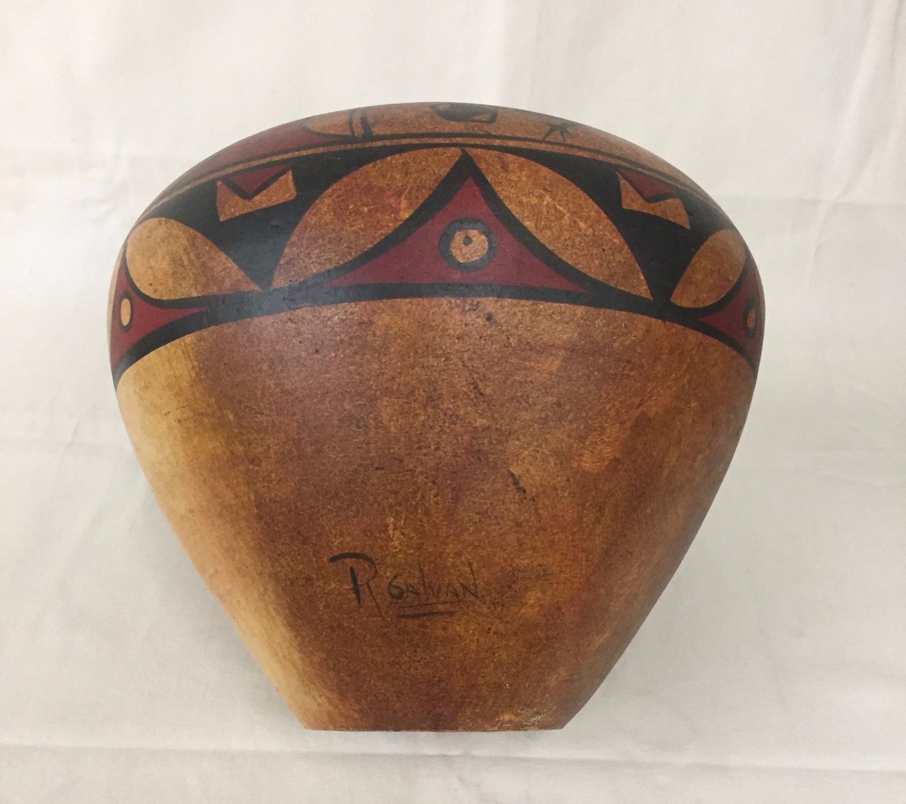 Maker: R. Glavan. Approx. Age: Fairly Modern. Size: 13” at its widest point and 11” tall. Additional Info: Very nice Mexican Indian pot made and signed by R. Galvin. Condition: Good for its age. Please look closely at the pictures - they are an important part of our description. Shipping: There will be a $10 handling / packaging fee for shipping this lot. The actual cost of postage will be added on top of that.