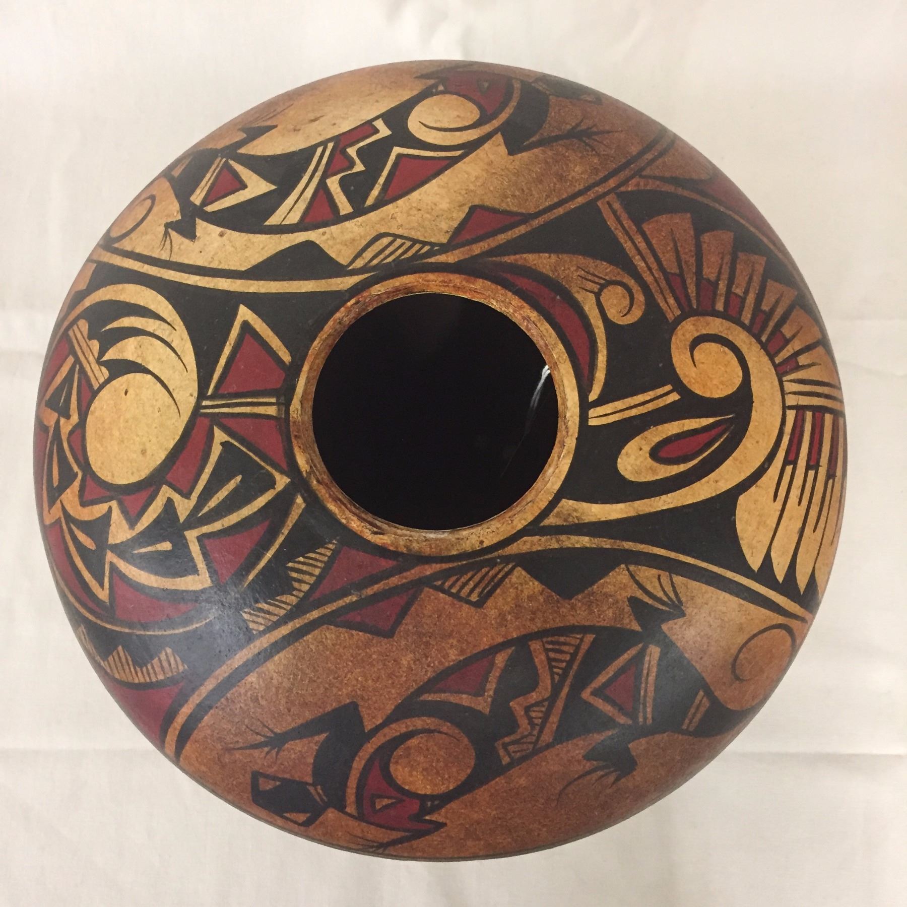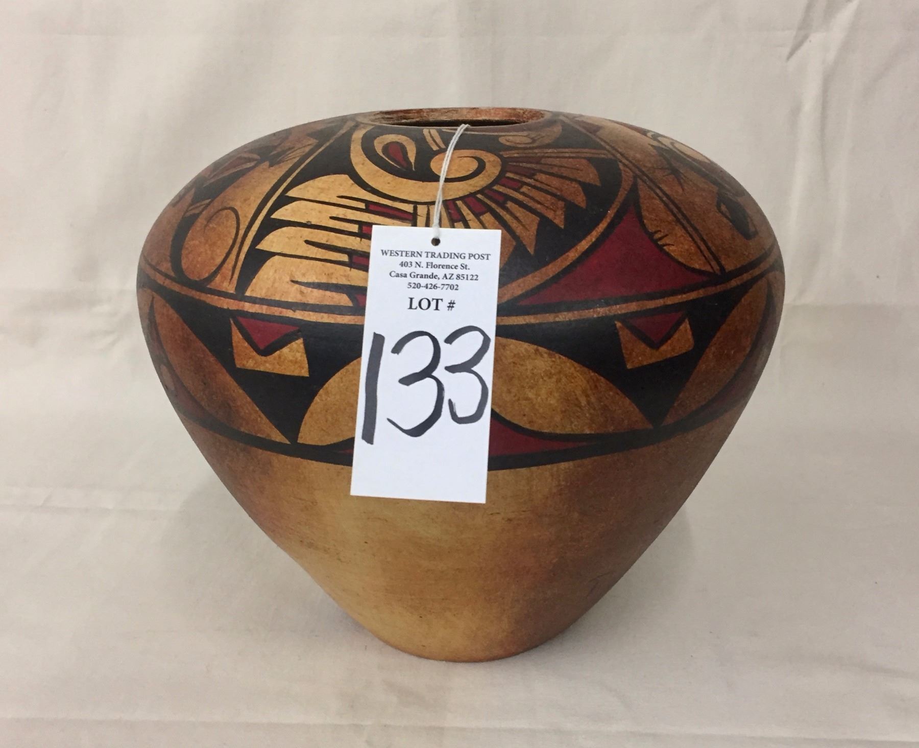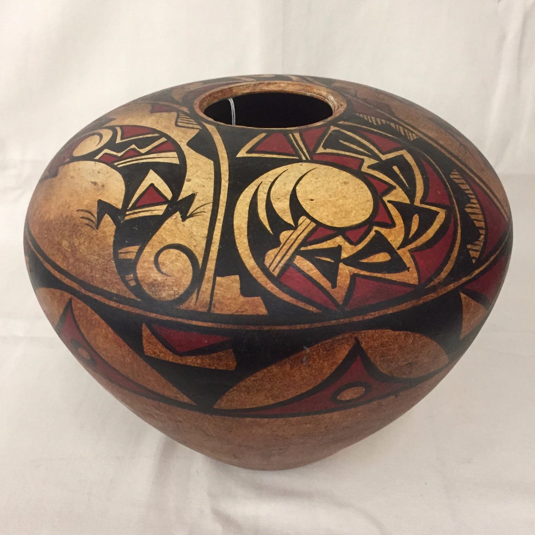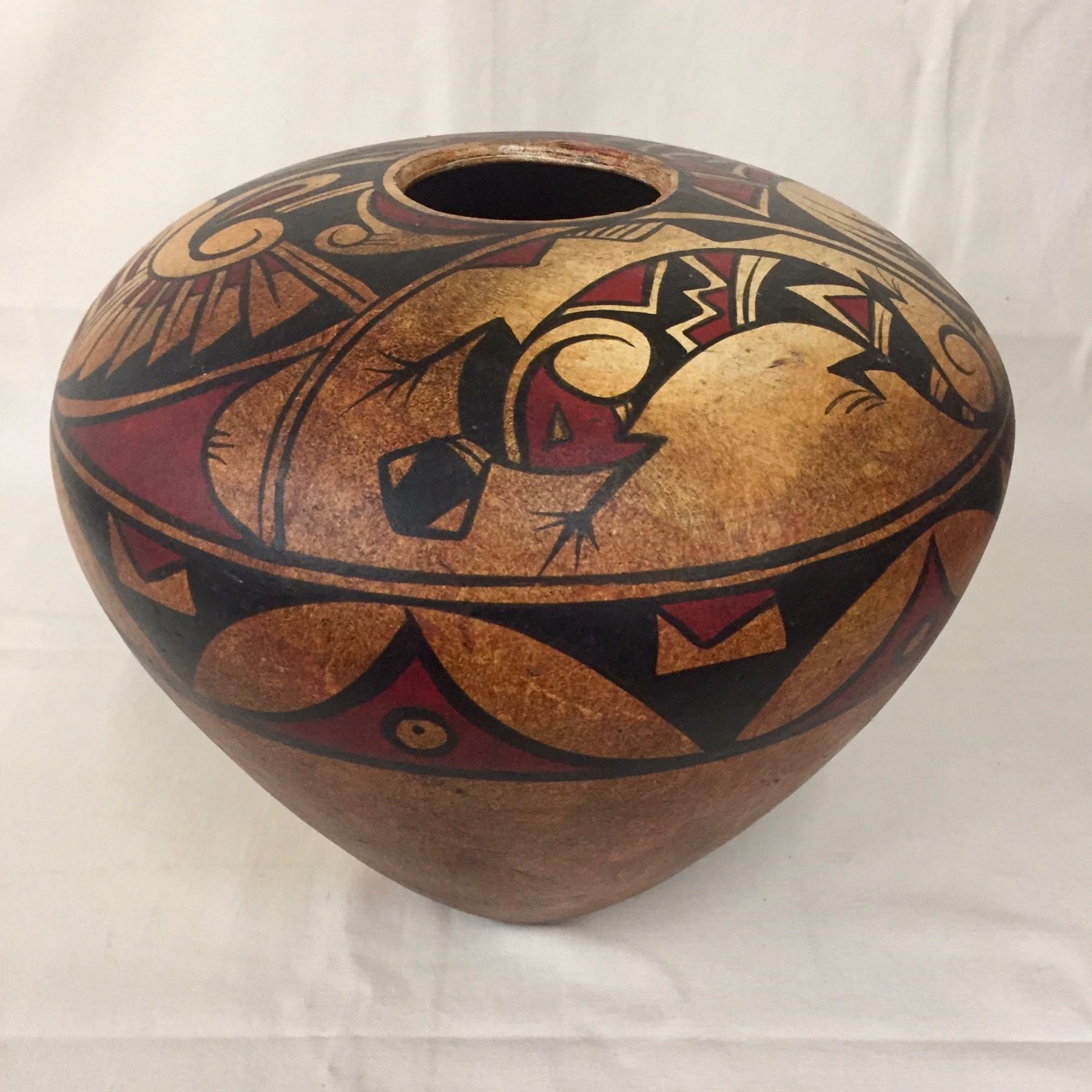Maker: R. Glavan. Approx. Age: Fairly Modern. Size: 13” at its widest point and 11” tall. Additional Info: Very nice Mexican Indian pot made and signed by R. Galvin. Condition: Good for its age. Please look closely at the pictures - they are an important part of our description. Shipping: There will be a $10 handling / packaging fee for shipping this lot. The actual cost of postage will be added on top of that.