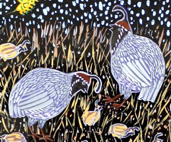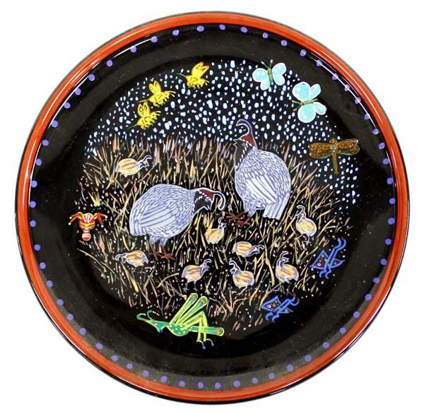 Hand Painted Pottery Plate ''Quail Buzz'', A. Bean