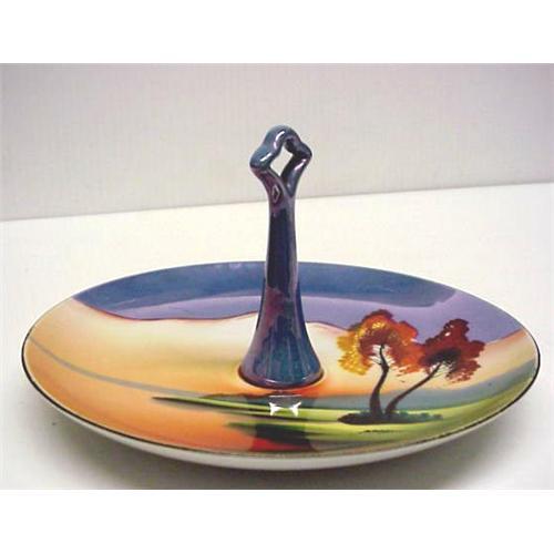 This is lovely Hand Painted round dish with center post - Decorated in a lovely colors depicting amazing landscape scene - Please take a look our images, This piece is MOST BEAUTIFUL! - US Buyer to pay 8.00 for shipping plus insurance - Thank You very much for looking!