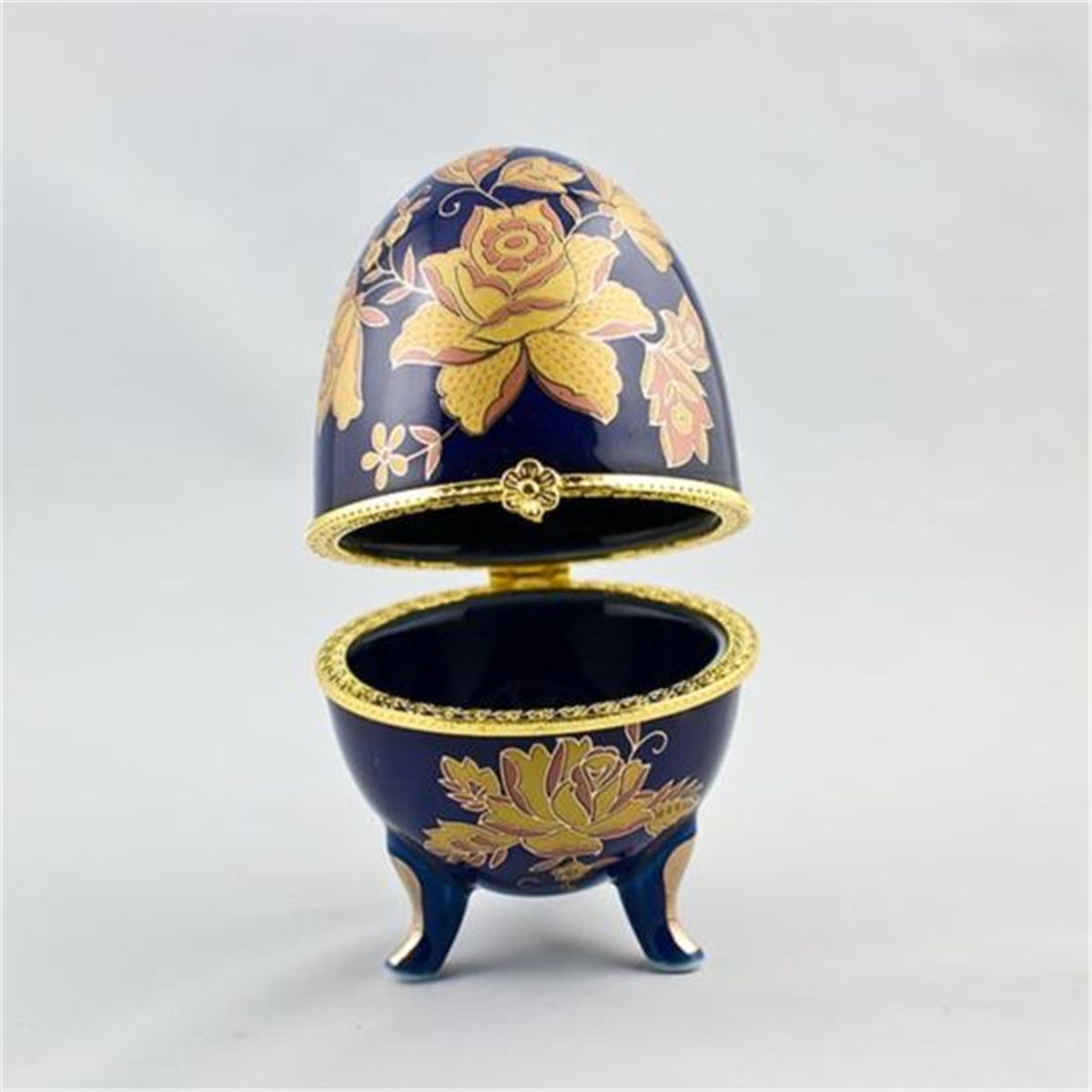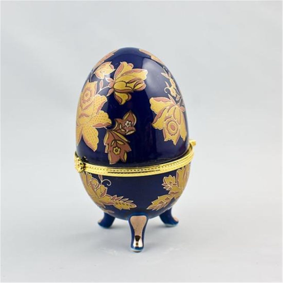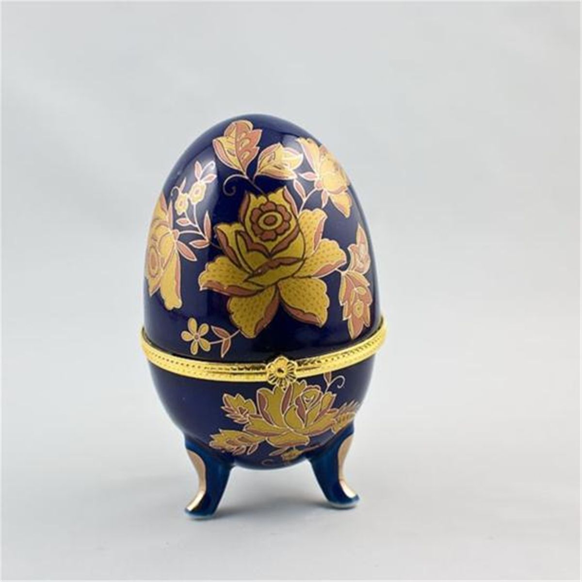 Hand Painted Rose on Blue Porcelain Trinket Box, Dimensions: 3.75in (H) x 2.25in (D), Delicate and charming, this porcelain trinket box is the perfect place for hiding the tiniest treasures and jewelry.