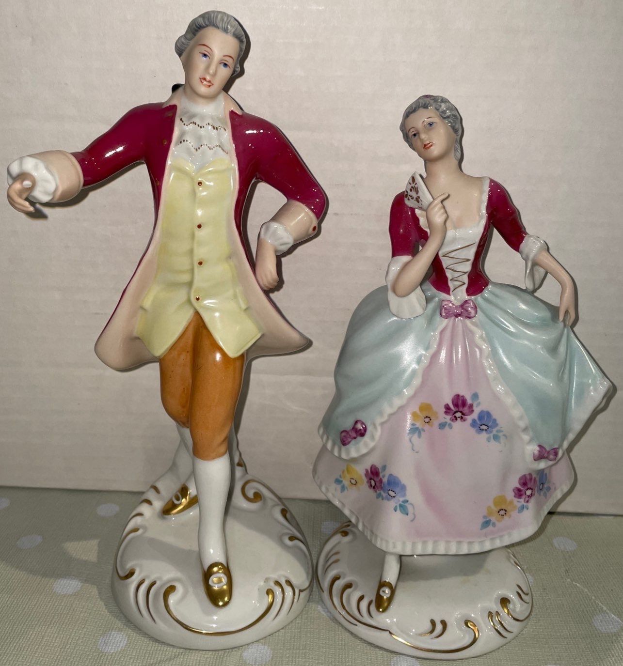 Hand Painted Royal Dux Set of 2 Sculptures, Man & Woman