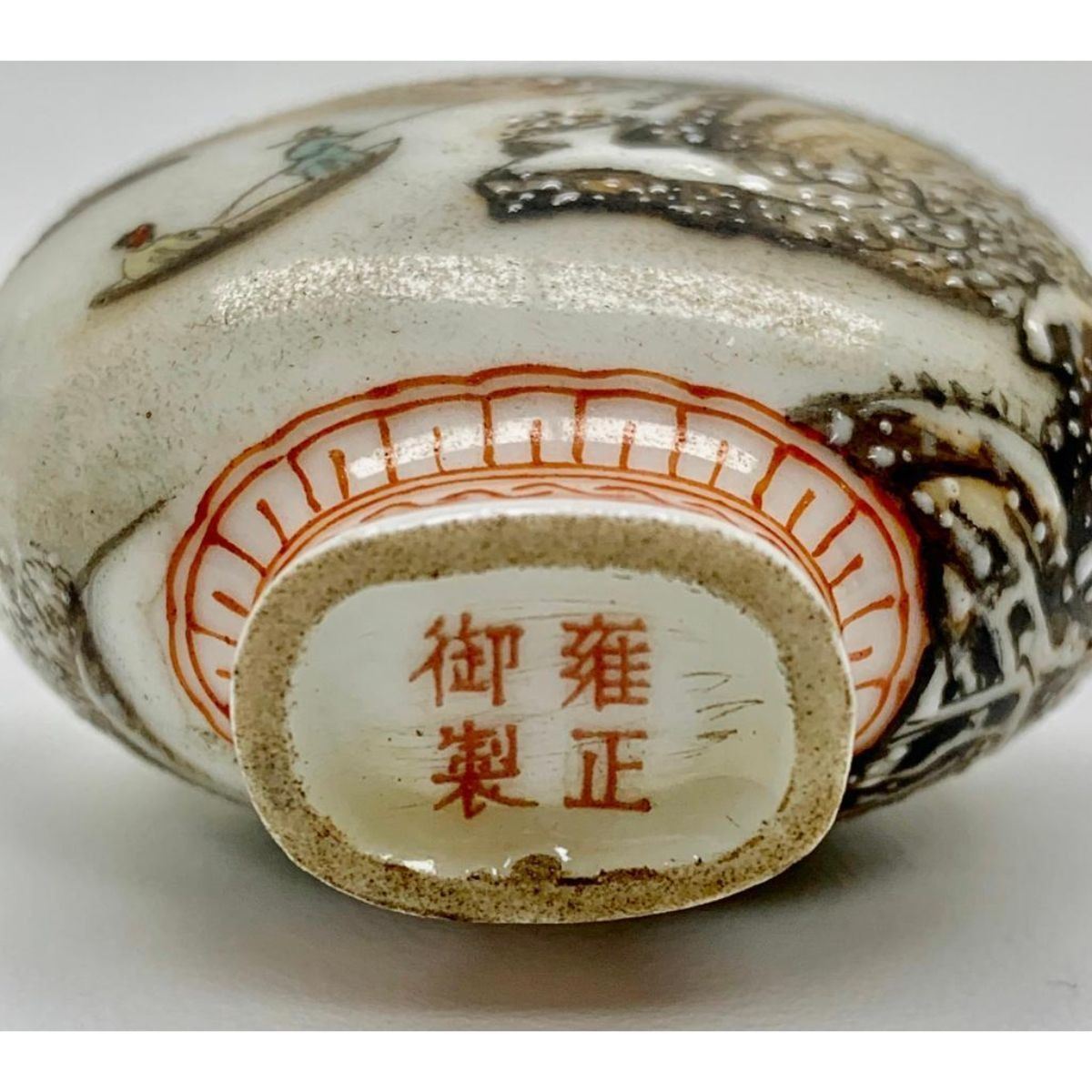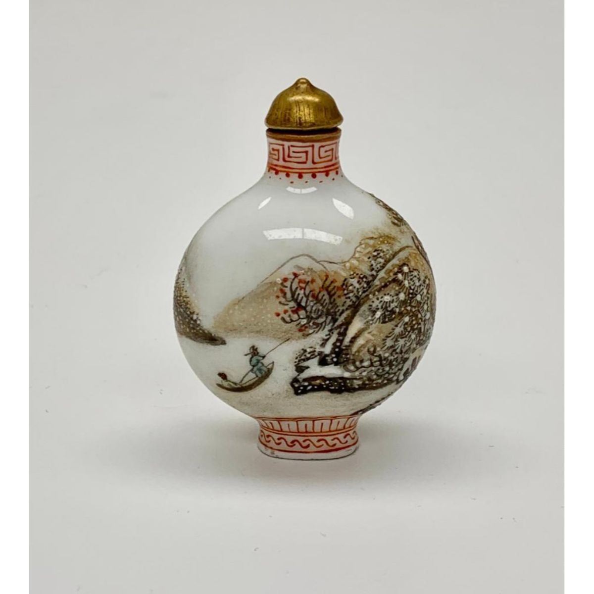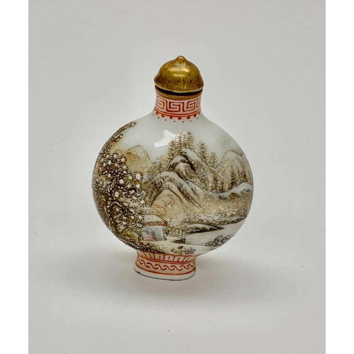 Hand Painted Snow-covered Landscape Statue Snuff Bottle Length: 2.5 in Width: 2 in
