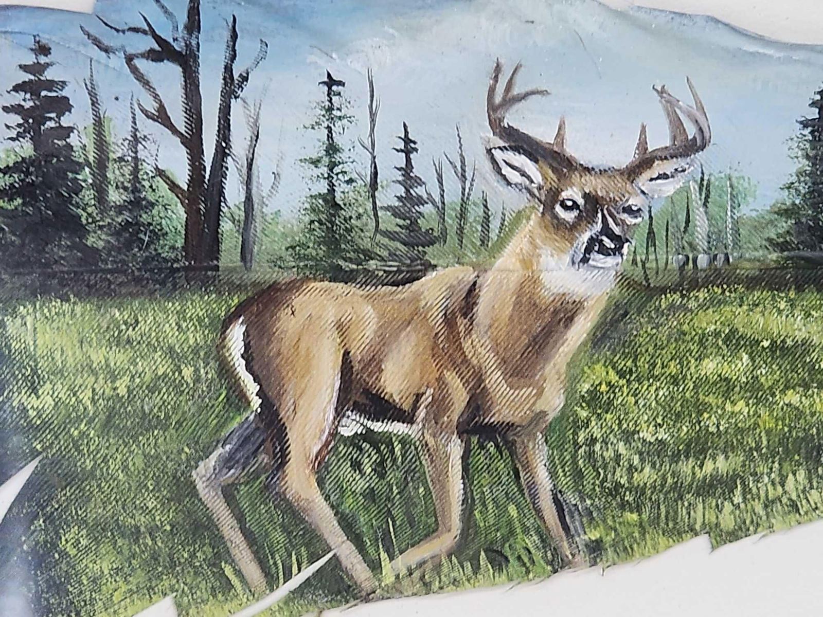 45.41 In rustic frame featuring Whitetail Deer great accent piece