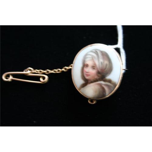 <tr><td>Title:Hand Painted Victorian Portrait Brooch/Pin </td></tr>