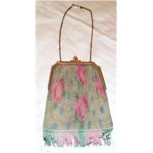 This fantastic Mesh Hand Painted Whiting and Davis Purse is decorated with lovely pink roses and is in SUPERIOR condition with no missing links. The purse measures 3.625" wide and is 5.50" long not including the handle. This purse is marked with the familiar Whiting and Davis Logo.