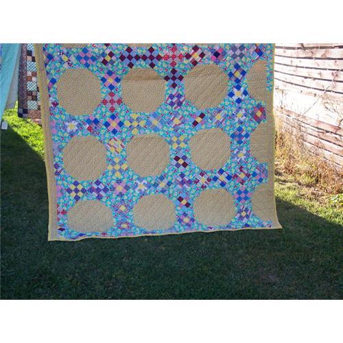 Very colorful hand quilted floral and yellow quilt.This is a little heavier quilt,nice and warm.Measures 78x71.