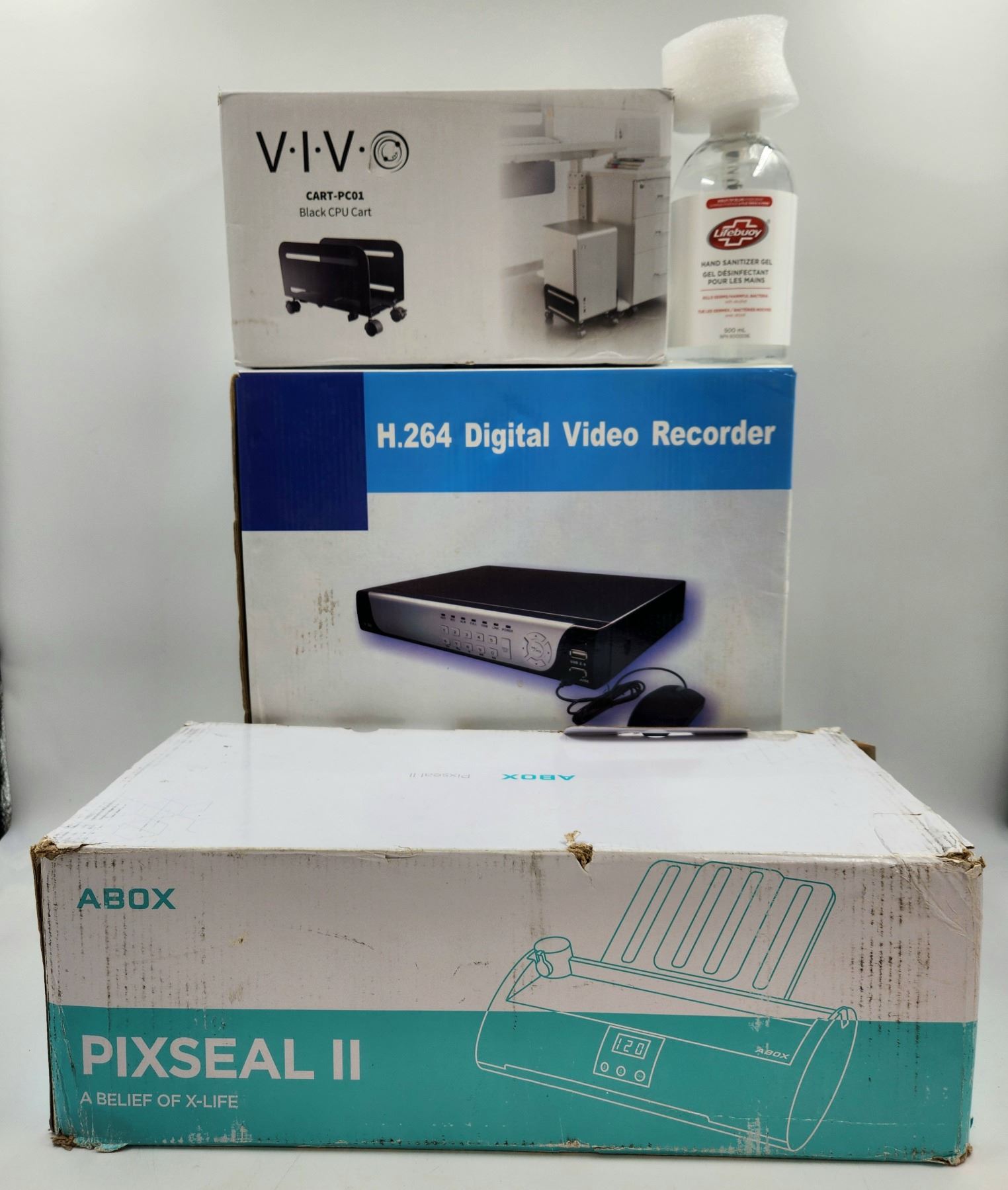 Hand Sanitizer, CPU Cart, Digital Video Recorder, Laminator