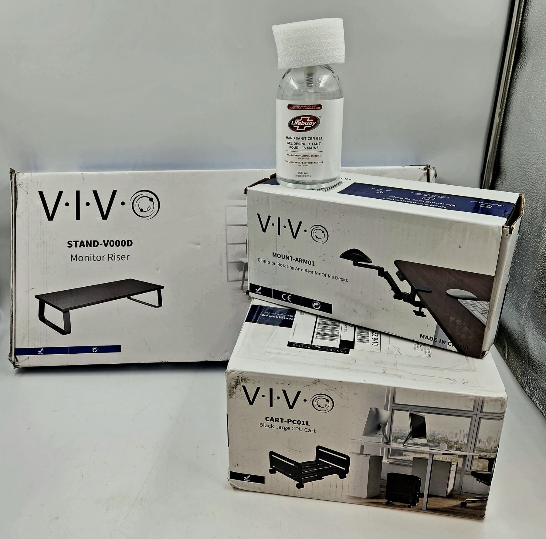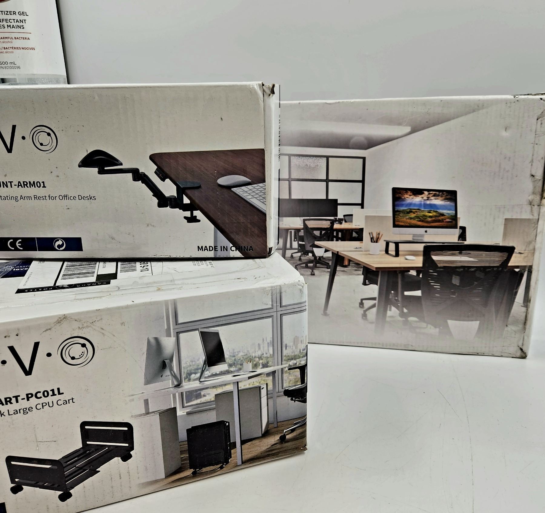Hand Sanitizer, Monitor Riser, Arm Rest, Large CPU Cart