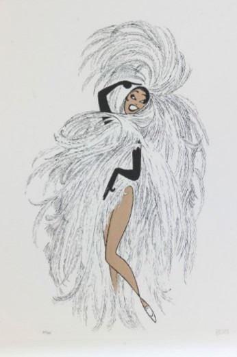 Hand signed limited edition lithograph after Al Hirschfeld "Josephine Baker". Hand signed by the artist in a limited edition series. Hand pulled lithograph of a Hirschfeld illustration: The illustrious cabaret icon, Josephine Baker, with her trademark fans dancing around her scantily clad body. Unframed dimensions approximately 19x26.