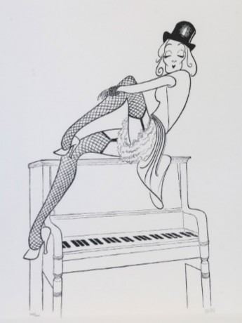 Hand signed limited edition lithograph after Al Hirschfeld "Marlene Dietrich – Lili Marlene". Hand signed by the artist in a limited edition series. Hand pulled lithograph of a Hirschfeld illustration: Marlene Dietrich’s famous (and famously insured) legs in a re-enactment of a publicity image from Rainier Fassbinder’s German propaganda film, starring Hanna Schygulla, “Lilli Marlene.” The film named for the beloved song that Dietrich recorded in both German and English. The song was popular among German and Allied soldiers during WWII, even instigating a nightly cease fire on the African front so both sides could enjoy the song via Radio Belgrade. A German citizen and film star, Dietrich opposed Hitler and the Nazi’s and remained in the U.S. during the war, working for the USO, entertaining the allied soldiers by performing the song live. She recorded it in both German and English.Unframed dimensions approximately 19x24.