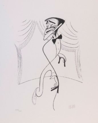 Hand signed limited edition lithograph after Al Hirschfeld "Sammy Davis Jr.". Hand signed by the artist in a limited edition series. Hand pulled lithograph of a Hirschfeld illustration: Sammy on stage, where he entertained audiences with his quick wit and enormous talent. Unframed dimensions approximately 15x18.