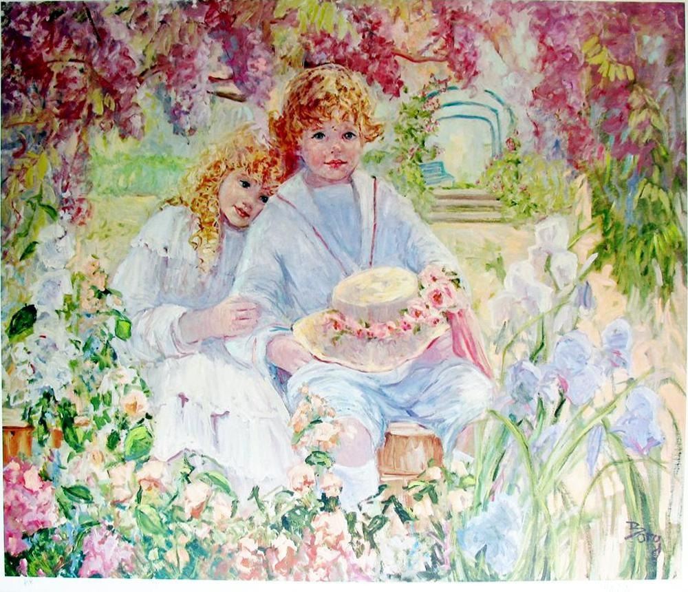 Hand Signed Limited Edition Ap Impressionism Children | Unframed Size: 24X27 | Offered Unframed . Framing presentation if shown is for concept only. If you need assistance with custom framing, call the experts at ArtForSale