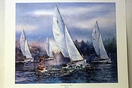 Authentic Hand Signed Authentic Lithograph Authentic Burger titled "Rounding the Mark"