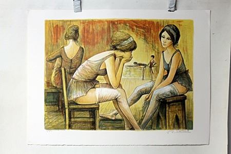 Authentic Hand Signed Authentic Lithograph Authentic Lalande titled "Ballet Class"