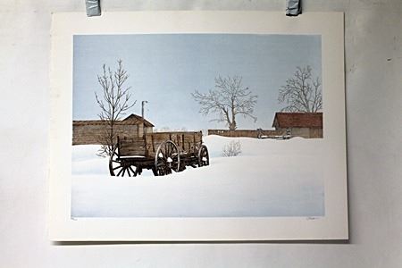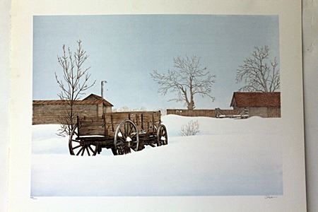 Authentic Hand Signed Authentic Lithograph Authentic Olson titled "Winter Farm "