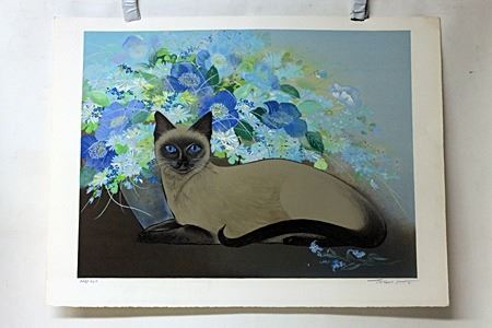 Authentic Hand Signed Authentic Lithograph Authentic Tatsuo titled "Cat "