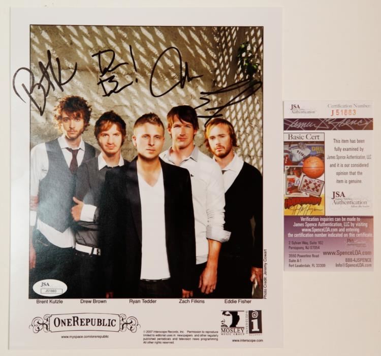 This Hand Signed One Republic Photo has been beautifully preserved and includes a James Spence Authentication Certificate. Please review the detailed photos to judge the condition for yourself. The photos measures 8" x 10."