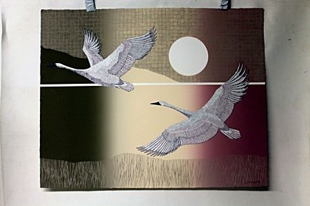 Authentic Hand Signed Serigraph Authentic Del Valle titled "Migration I Dyptich"