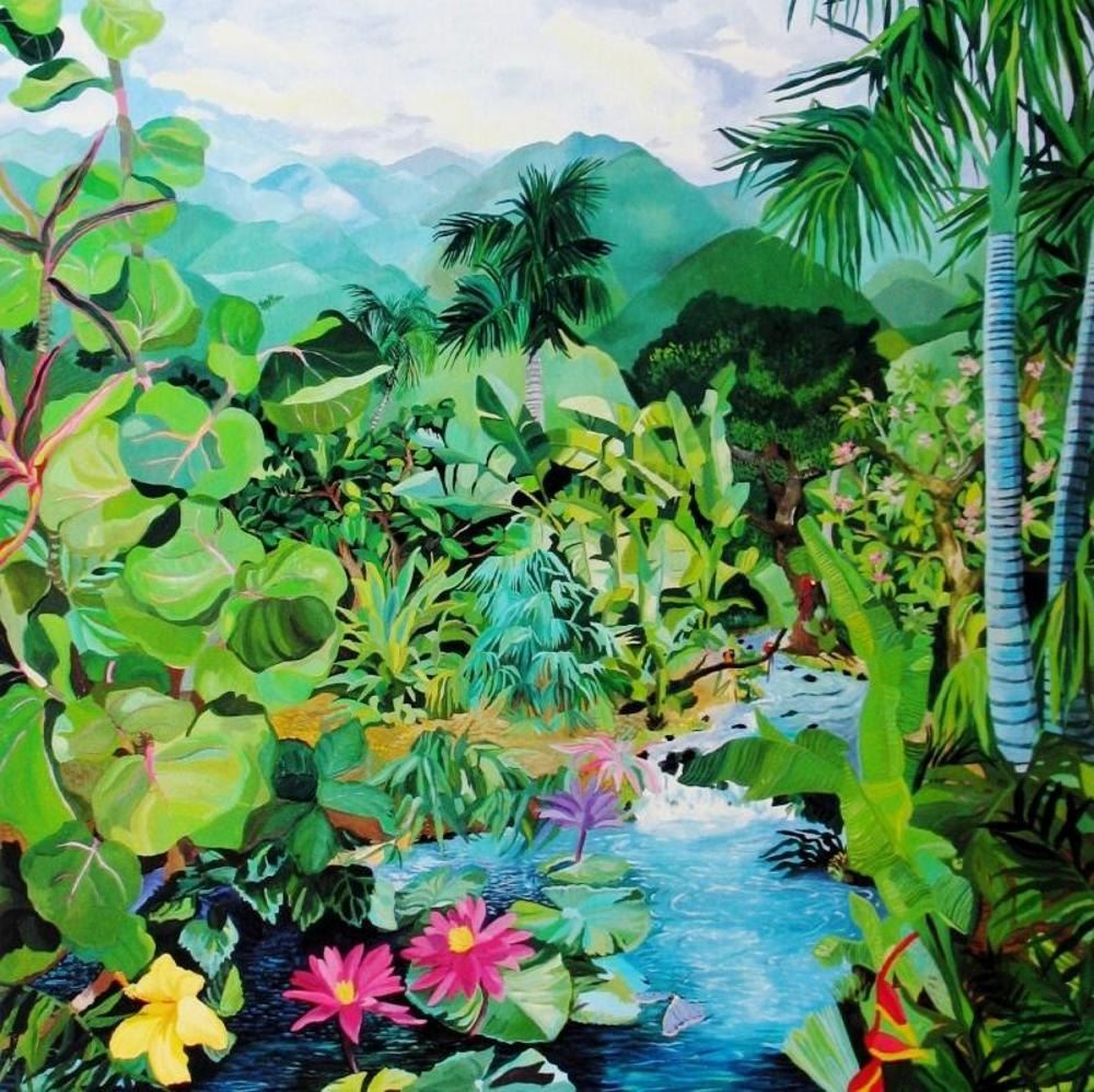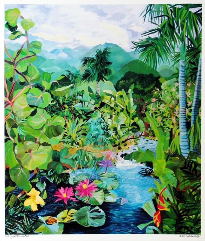 Hand Signed Tropical 1987 Eileen Seitz Jennifer Markes-Style | Unframed Size: 17X14 | Offered Unframed . Framing presentation if shown is for concept only. If you need assistance with custom framing, call the experts at ArtForSale