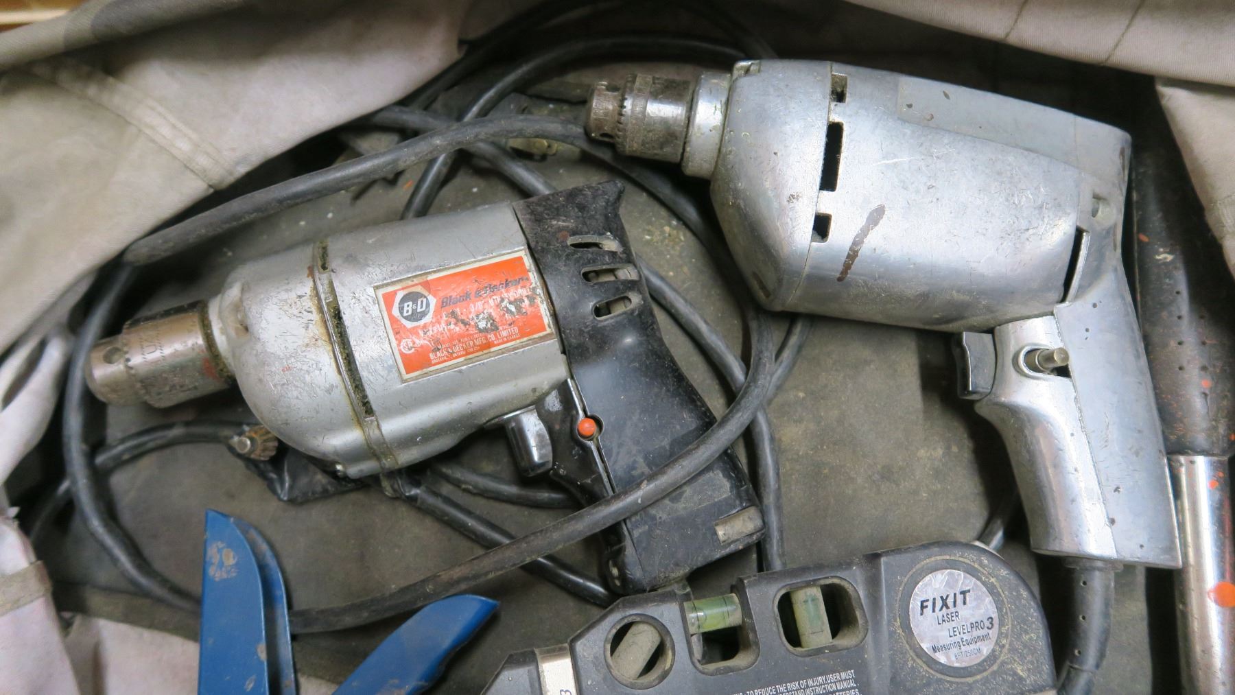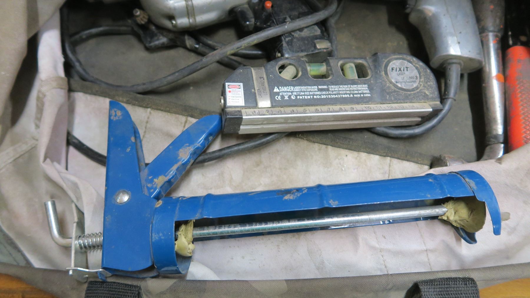 Hand Tools - Power Drills X2, Laser Level Tool, Hammers X2, Caulking Gun, Bag