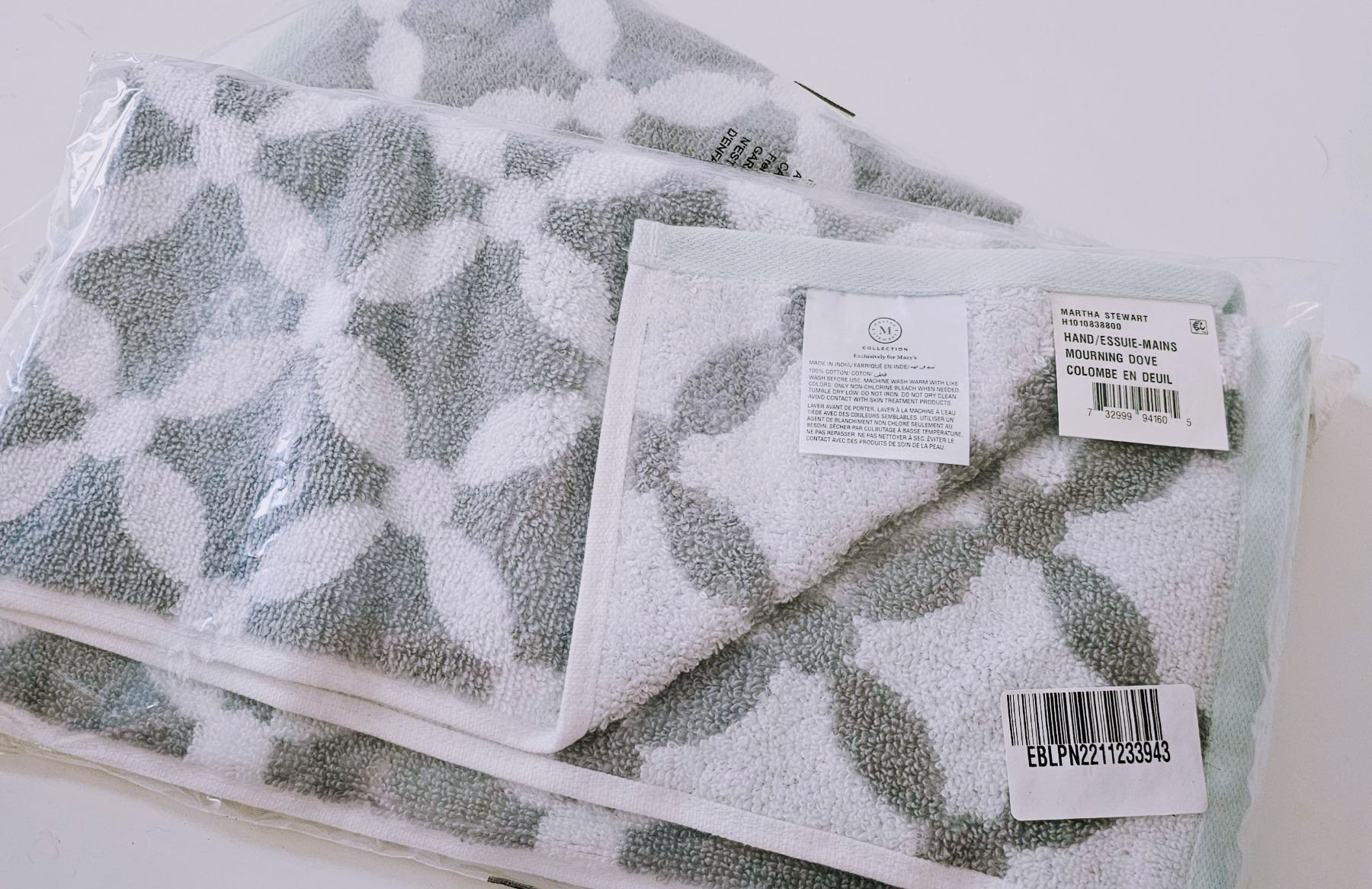 Martha Stewart, Hand Towels 2 Pack, Mouring Dove, Brand New