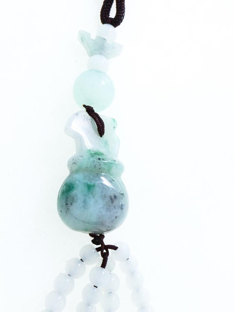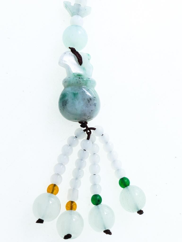 Hand Varved Jade Bracelet w/ Nylon Chord, Beads & Accent Carving