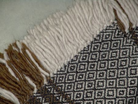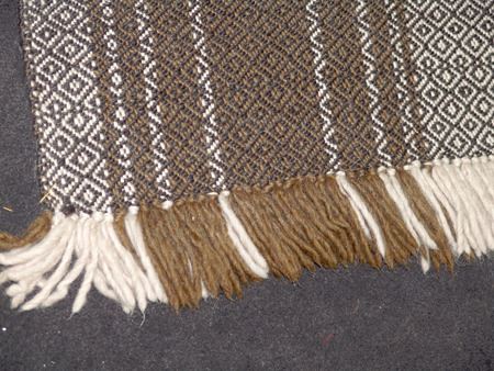 Mid/Late1900s, Beautiful multi-geometric design all-wool rug with great fringe. Very good condition. 66" x 46"
