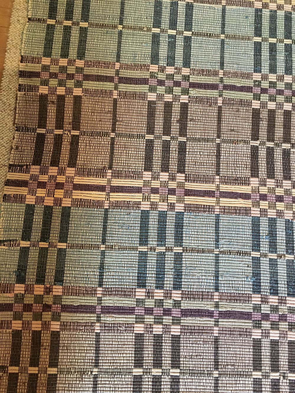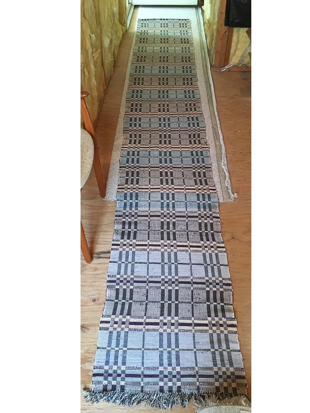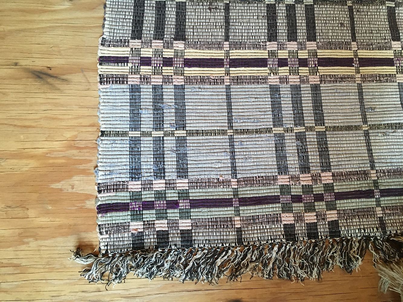 Mid-Century Modern handwoven cotton runner, Sweden, fringed on one side, measures approx. 161 inches x 23.5 inches
