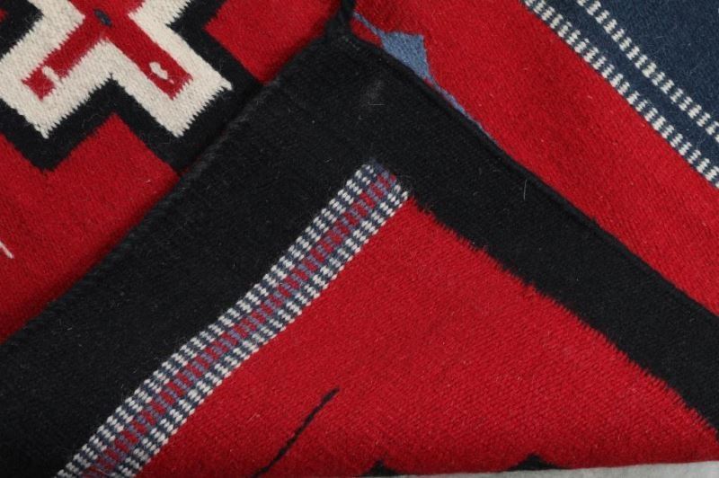 with bear fetish figural center, lightning, arrows and crosses etc. Measures approximately 58” x 58”. Very good to almost fine condition. Approximately 25-50 years old.