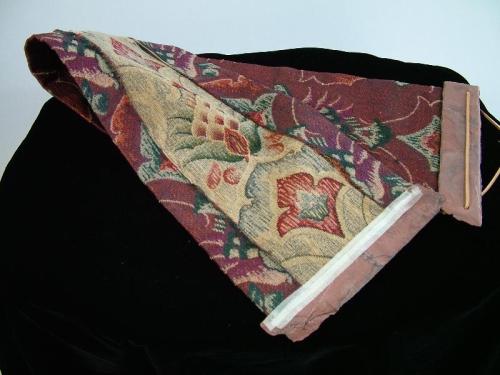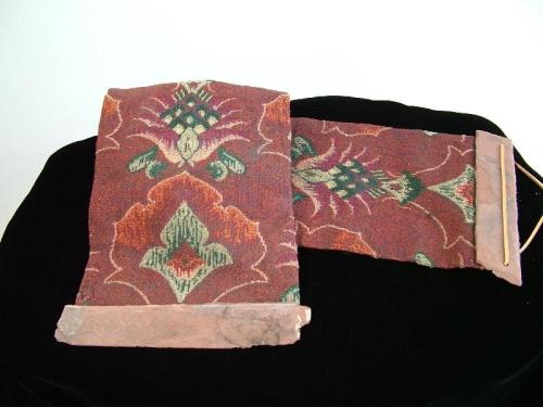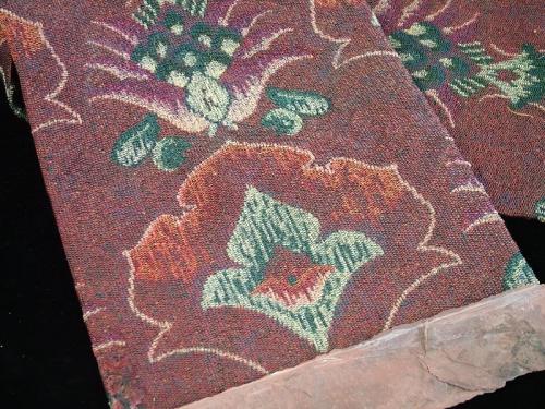(American) 20th Century hand-woven floral motif wall hanging with pink slate ends, 28" by 11".