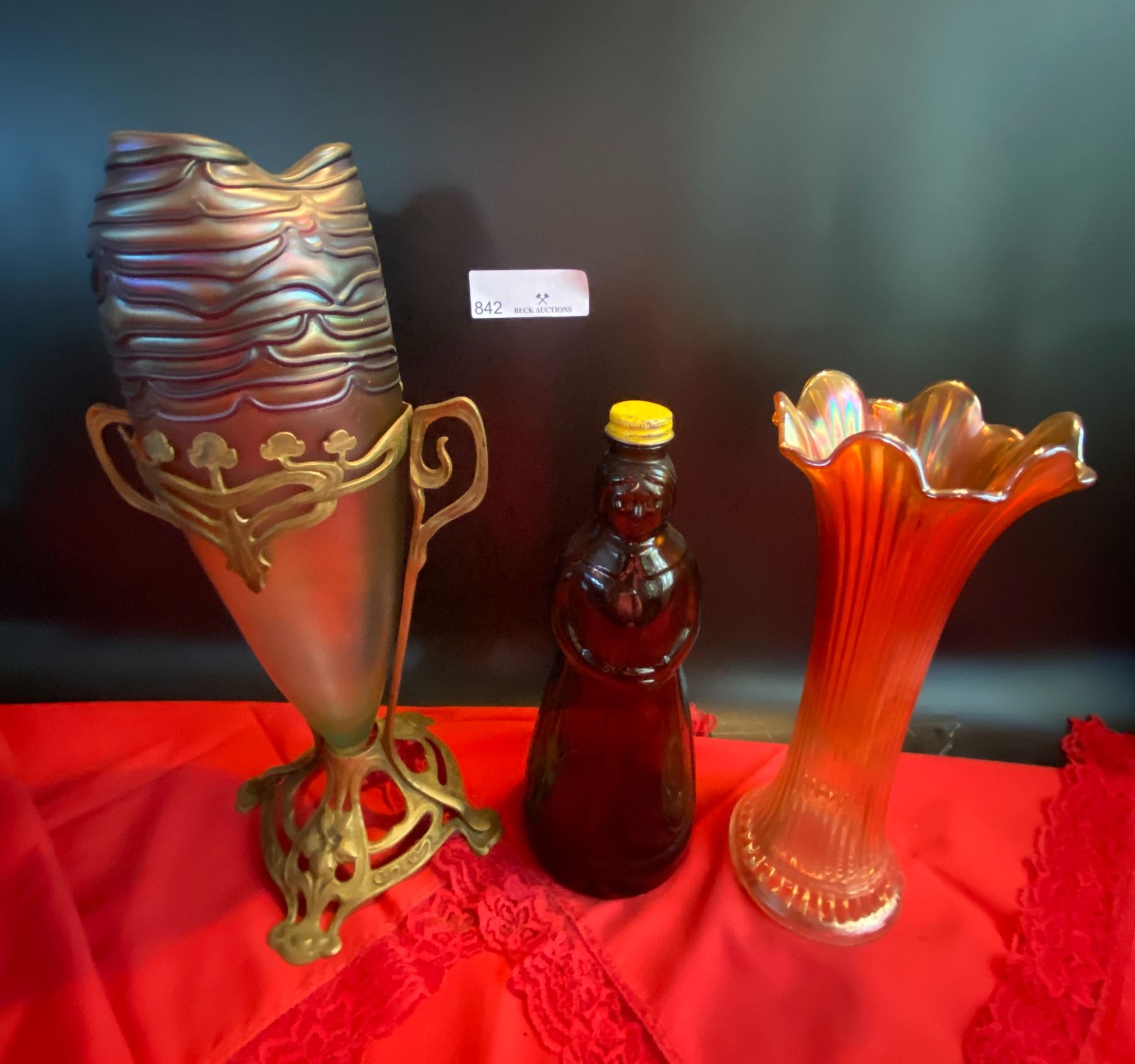 Hand-blown Very Old Vases 15H & Mrs. Butterworth Syrup Bottle 10H