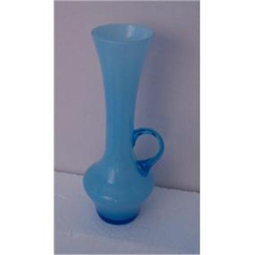 This is such an attractive small vase, it really defys description. With its applied handle in the slightly darker clear blue as well as the bottom quarter inch or so on the base of the vase, it has so much appeal and is in such perfect condition, we can only say that we KNOW you will be very pleased with your purchase... The vase is of course hand blown with a smooth pontil, the craftmanship is superb. Order three of anything that we can ship in one container, pay with PayPal and shipping is FREE...