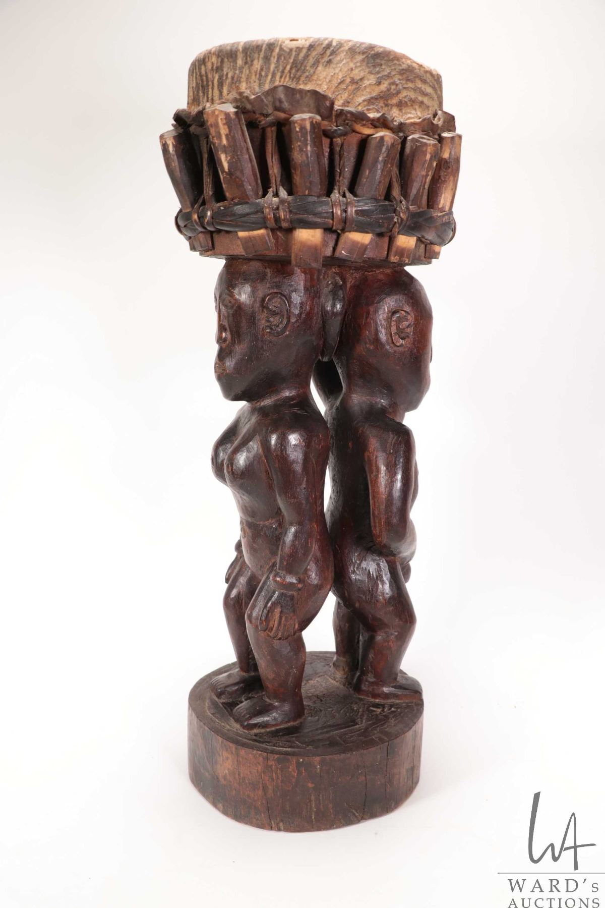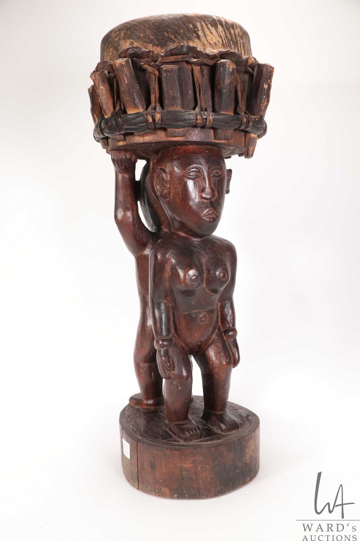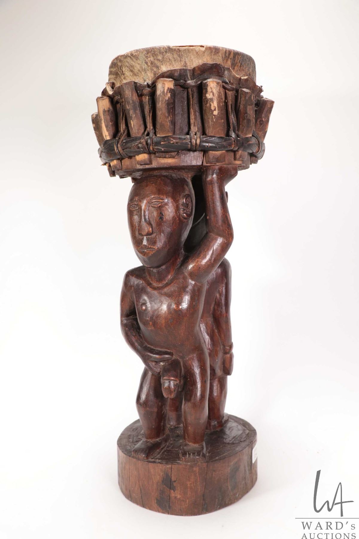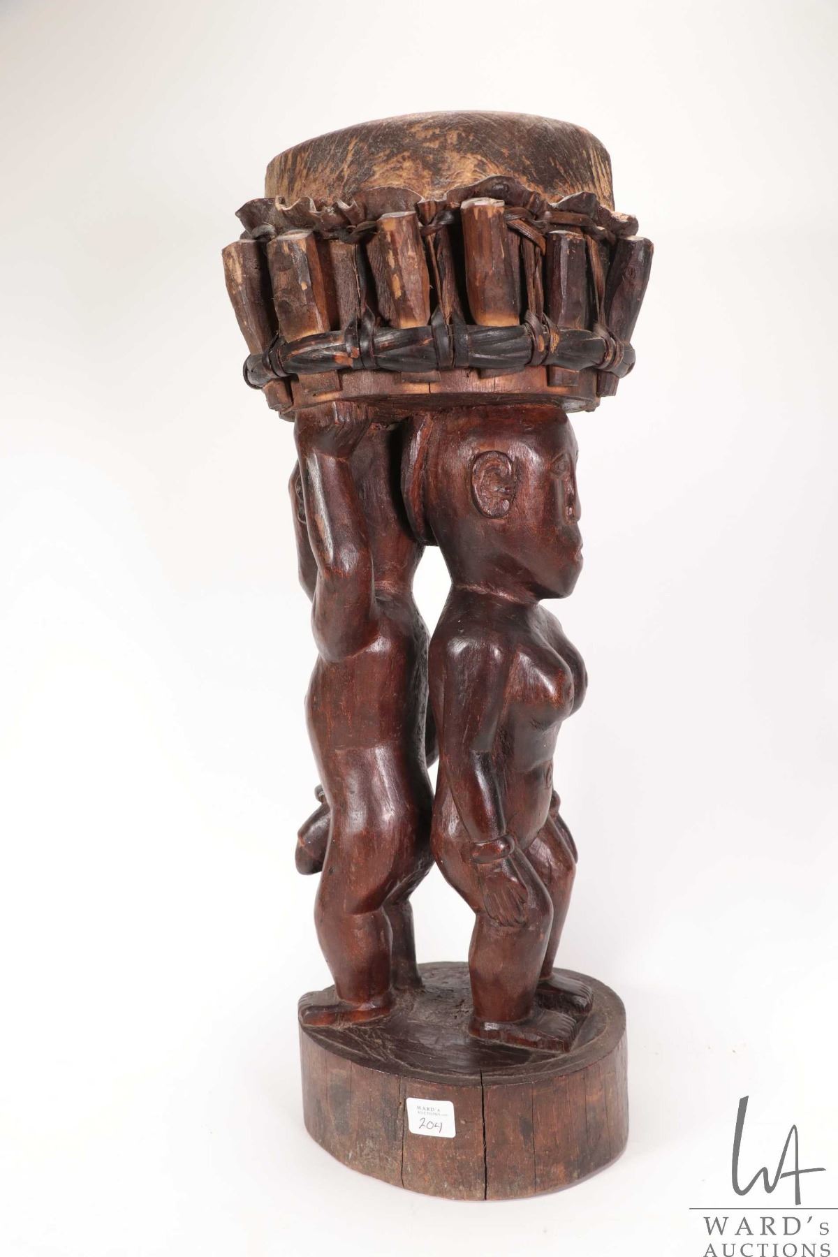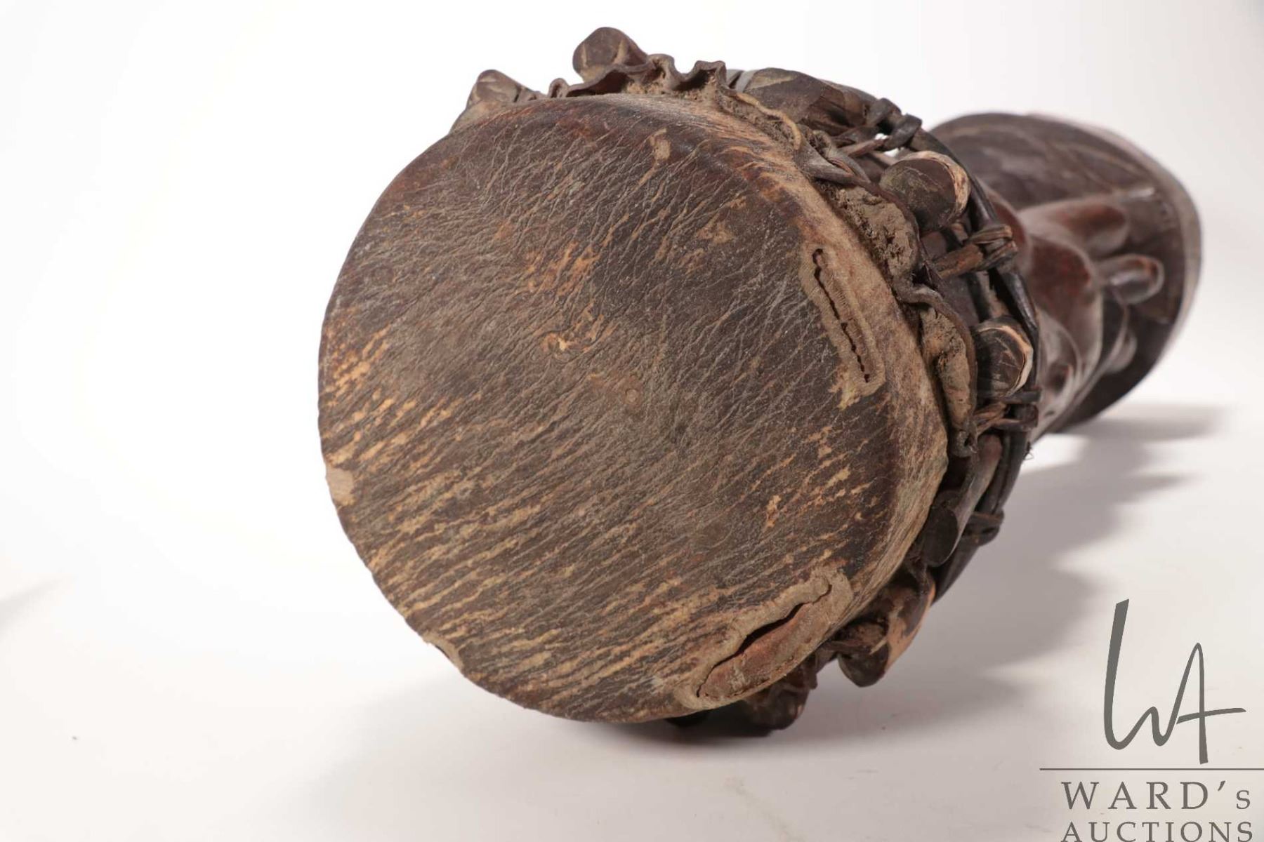 Hand carved African wooden drum with fertilty figured base 21" in height