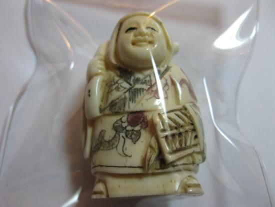 Beautifully hand carved and painted Ox bone NetsukeHand painted front and back.woman on her way to the fields.approx. 2 " high.