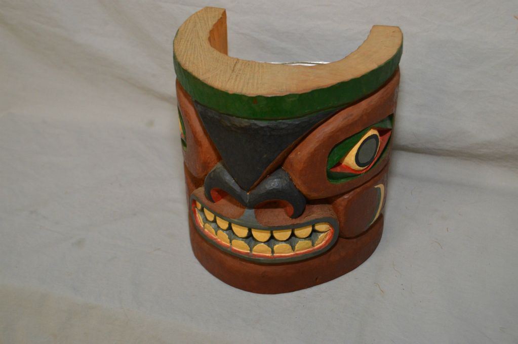 Hand carved Ditidaht First Nations mask signed by artist Gordon Robinson, 8" in height