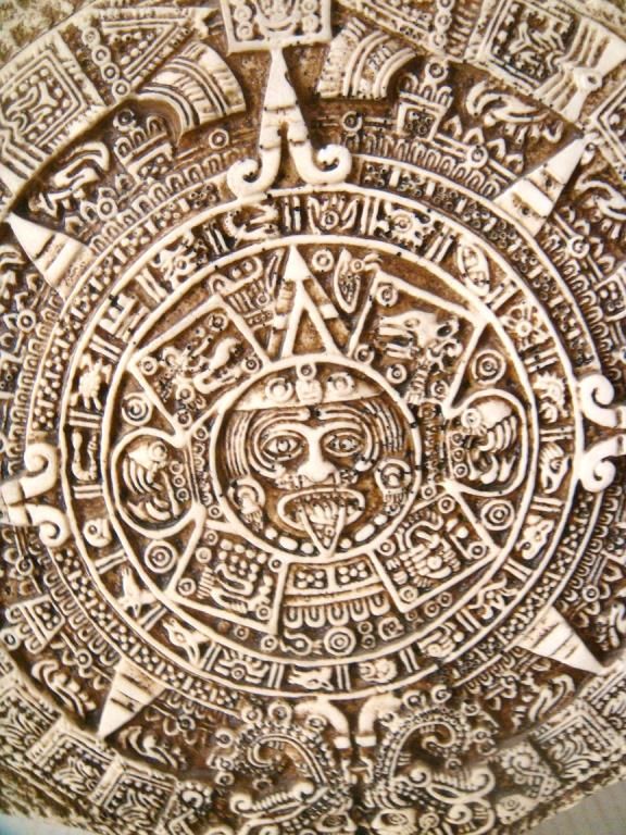 Hand carved Fish bone Aztec Calendar, Measures approx 12 inches H x 10.5 inches W