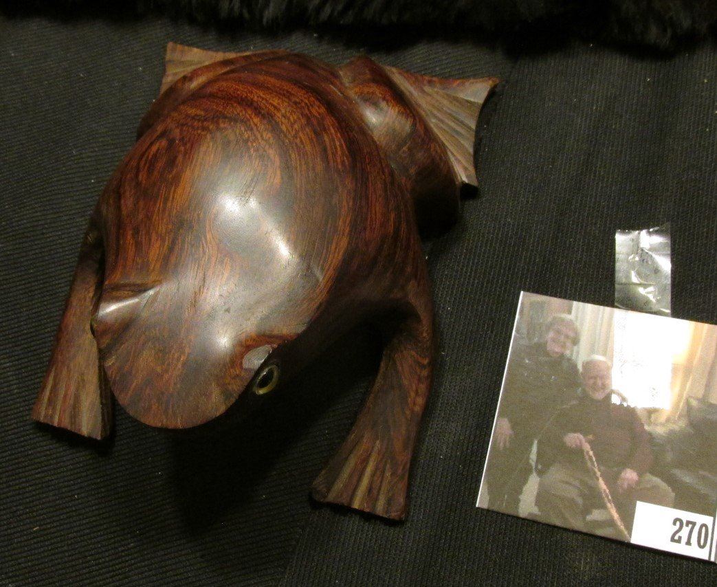 Hand carved Walnut or Iron Wood Frog with glass eyes, 3.5" x 4".