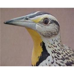 Hand carved and painted lifesize bird "Meadowlark", artist signed Gladys Black, (author of Iowa Birdlife) and written letter from Gladys Black dated 1974 Estimate 800/1500