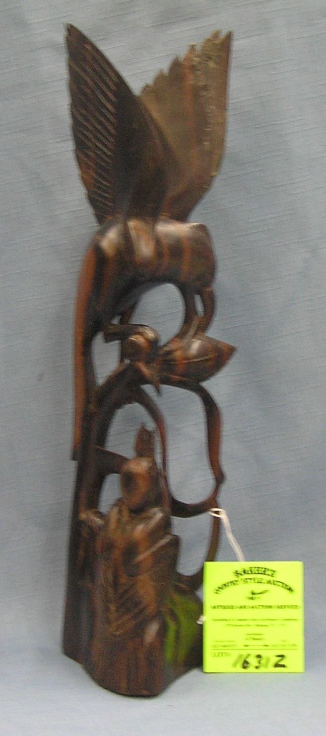 Hand carved figural bird carving condition as found, repair to left wing est. value $125.00-$150.00