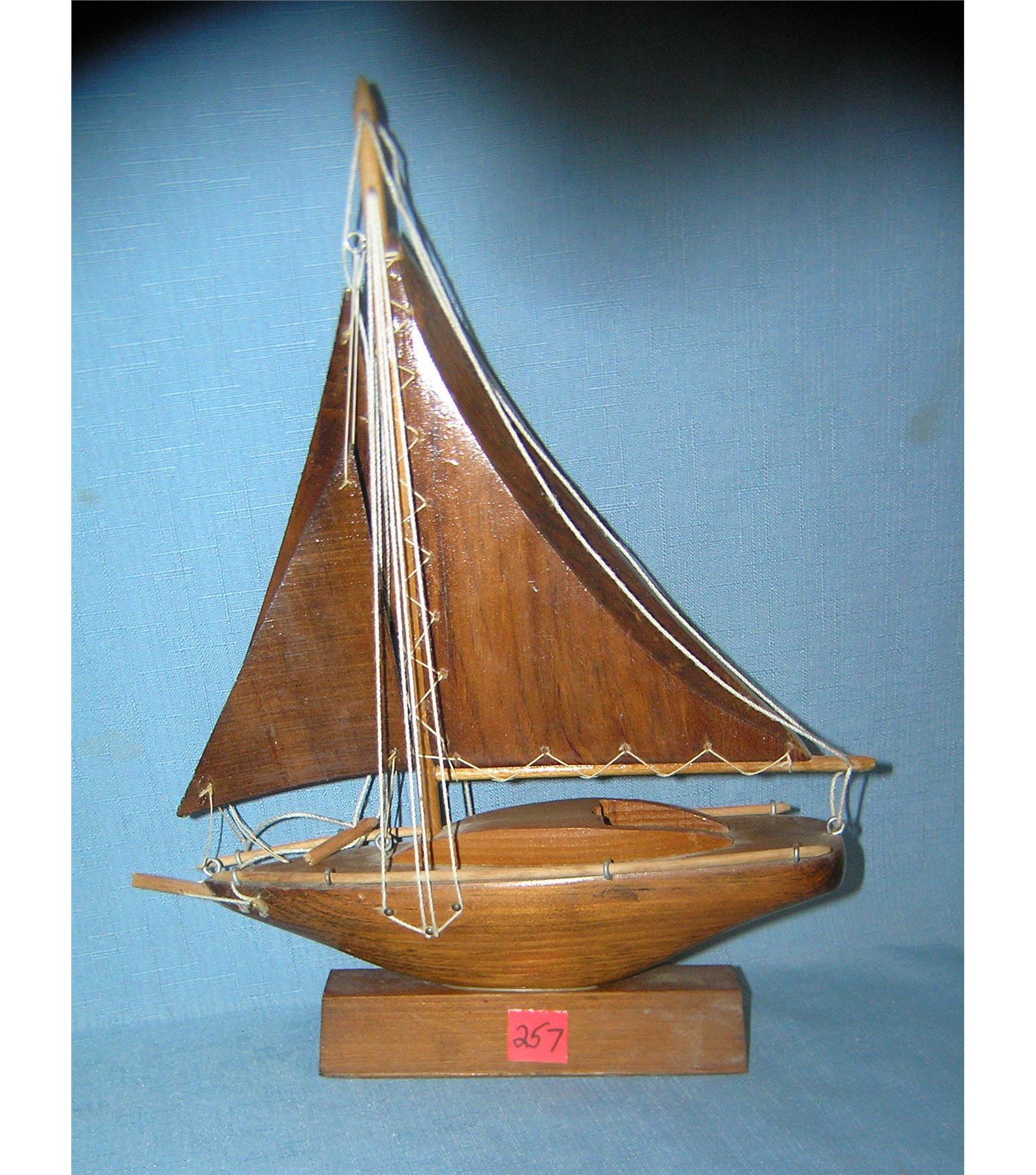 Hand carved wood sail boat on stand est. value $30.00-$35.00