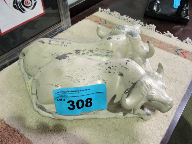 Hand crafted stone carved 3 napping oxen sculpture