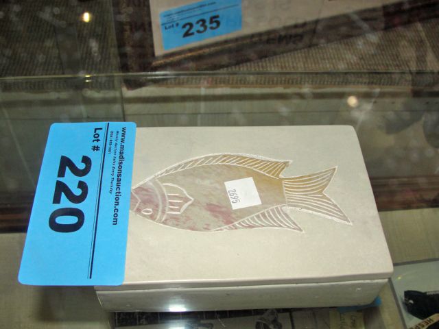 Hand crafted stone carved lidded card box