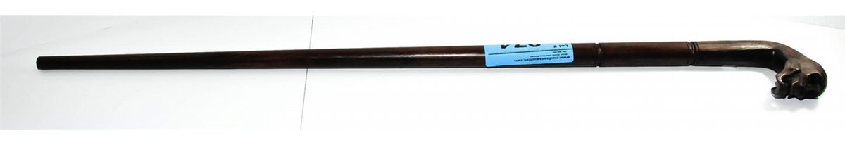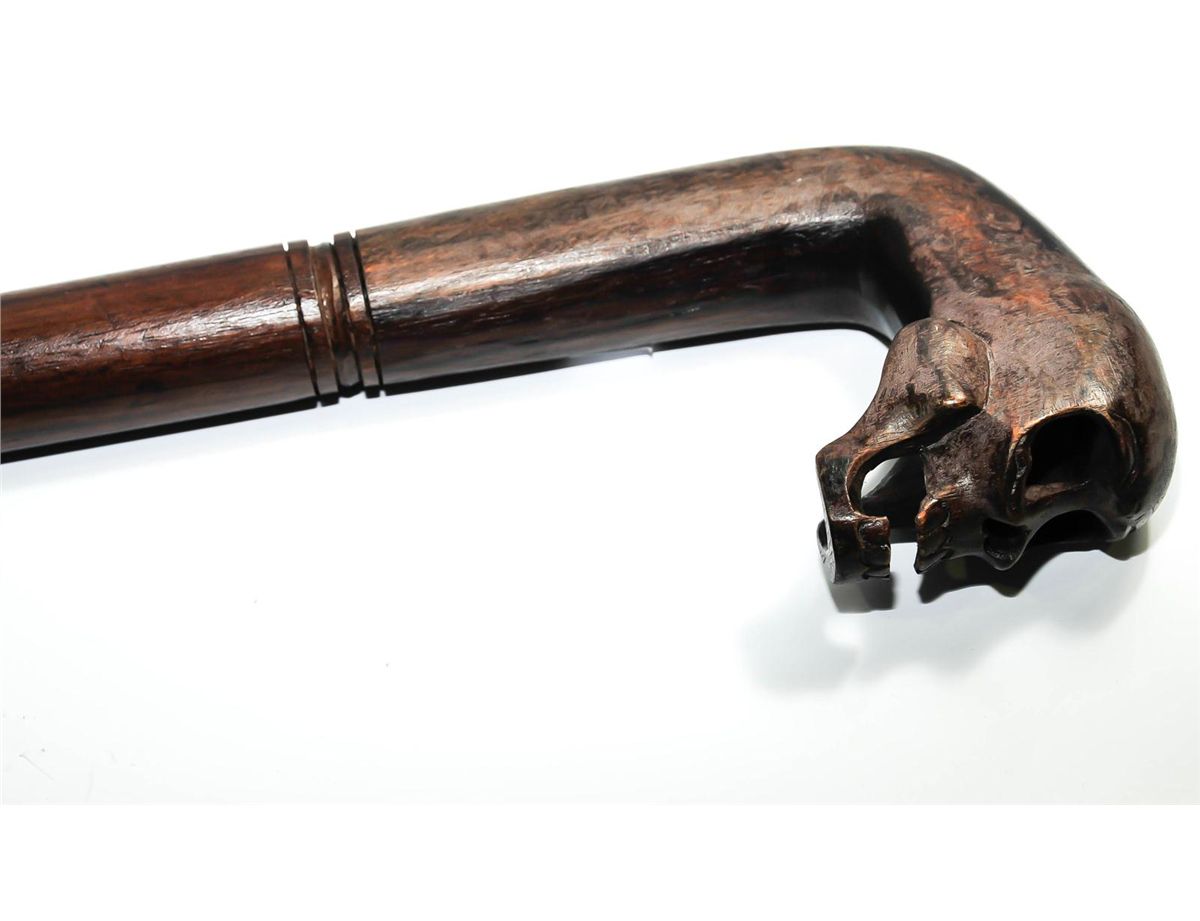 Hand crafted wooden walking stick with skull head
