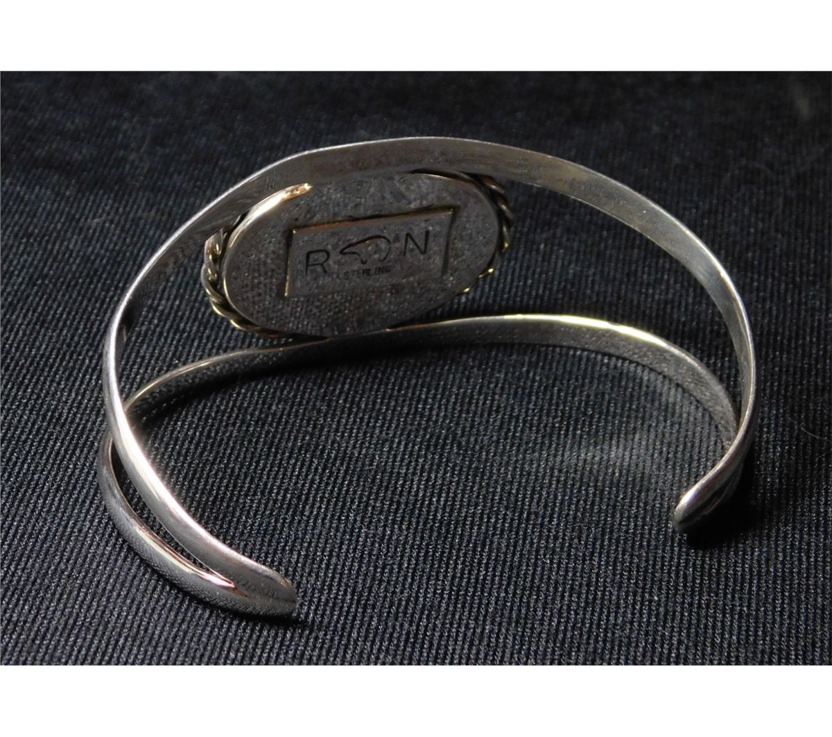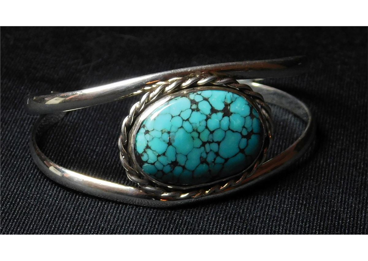 Hand made Native American Sterling Cuff Bracelet-Spiderweb Turquoise Cabochon--by "POPPI"