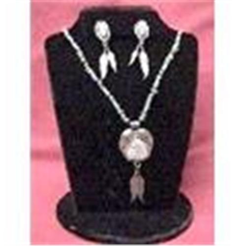 We are offering this exquisit hand made Sterling Silver and Turquoise and Crystal necklace and Earrings set in excellent condition. The necklace has Sterling Silver strand. There is no maker's mark. Nacklace ( L:19" and Pendent H:3.1/4"from the top to the bottom of the feathers W:1.1/4") Earrings L:2.1/2" W:0.1/2" .