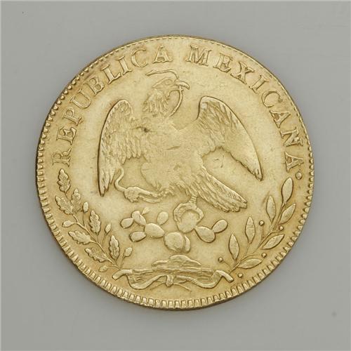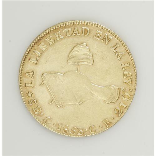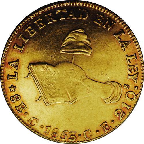 Hand on Book gold 8 Escudos 1853/1-C CE, KM-383.2, XF w